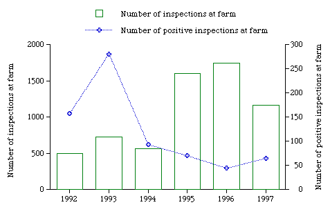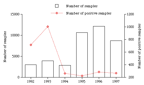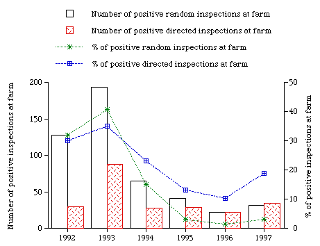 Monitoring programs: data obtained from the Veterinary Inspection Service of the Ministry of Agriculture (Belgium) for 1997.